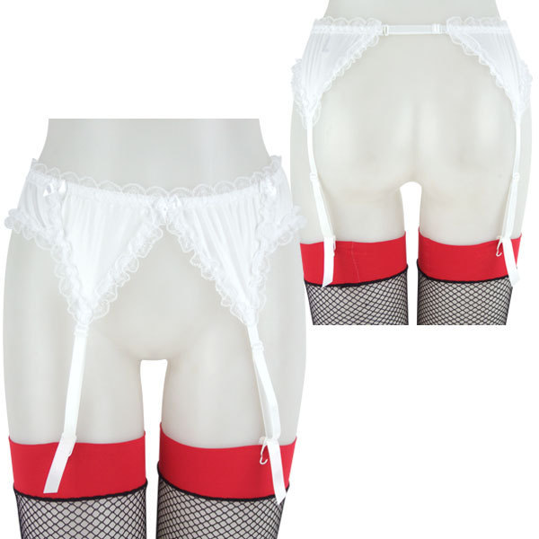 レースフリルグロスガーターベルト ホワイト ホワイト
