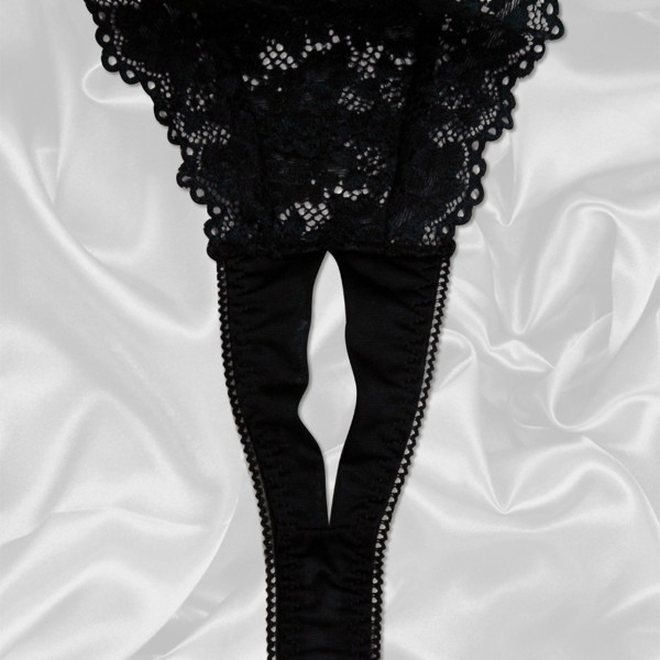 TOP > オープン ブラ・ショーツ(穴あき) > トリコット生地フラワーレース脇紐オープンTバック ブラック