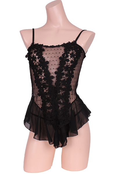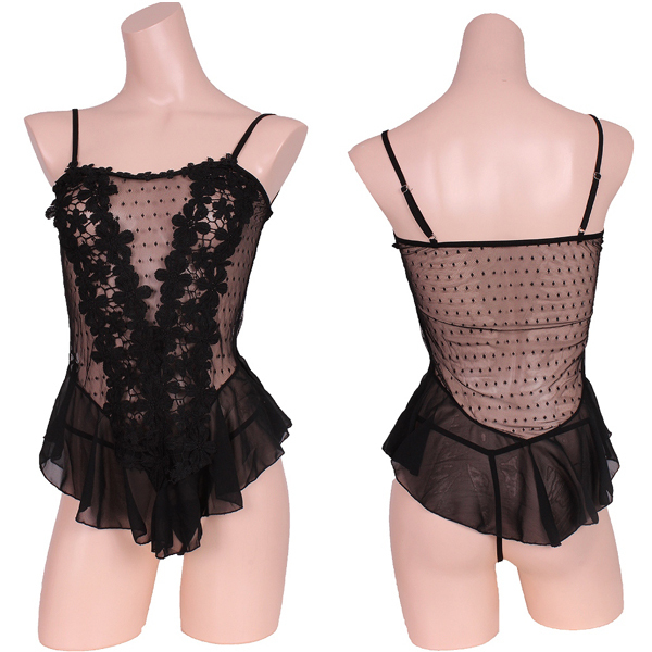 TOP > ベビードール > フリルとレースで可愛さ増しベビードール&Tバックセット ブラック フリルとレースで可愛さ増しベビードール&Tバックセット ブラック ブラック