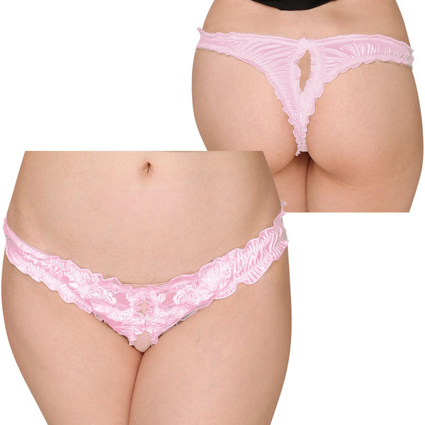 TOP > オープン ブラ・ショーツ(穴あき) > フェリカ&フラワーレース股割れオープンTバック ピンク