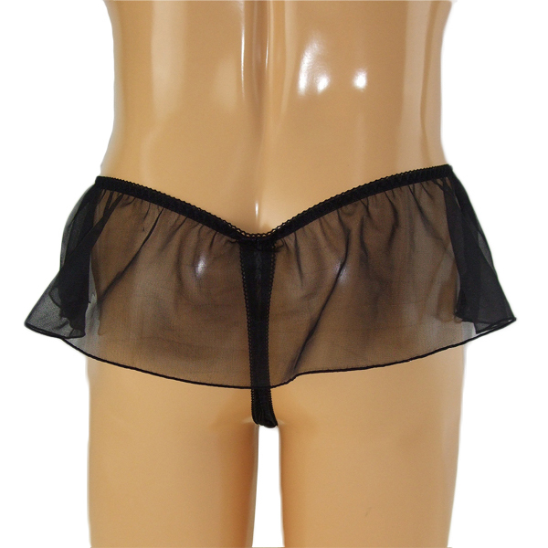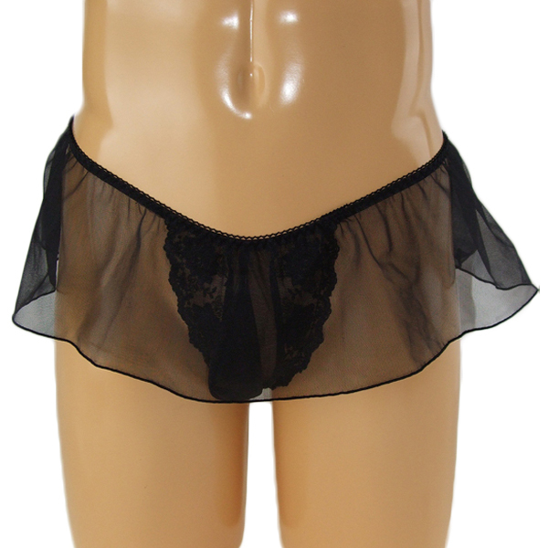 TOP > メンズ ショーツ・ビキニ > メンズ シースルースカート付きレース刺繍Tバック (ブラック)