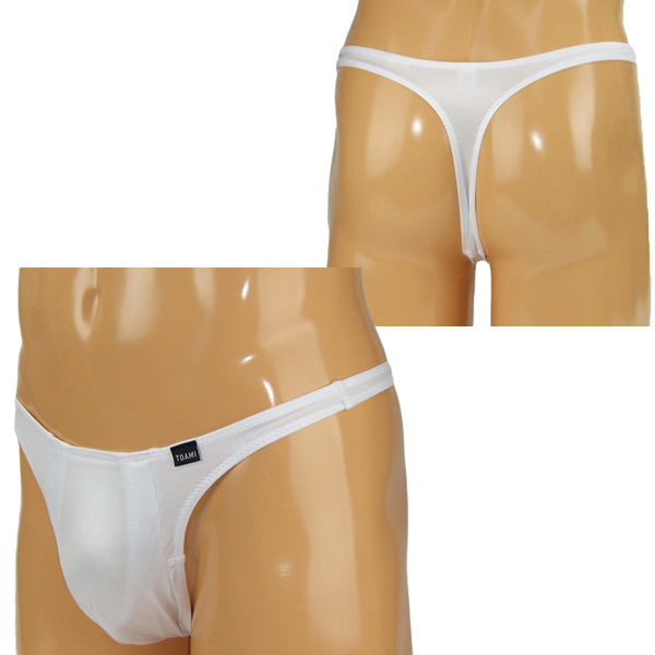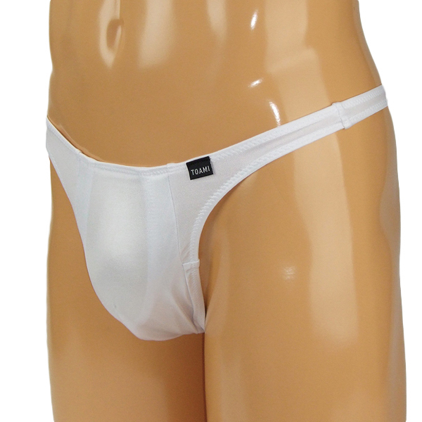 メンズ 光沢ストレッチ生地玉袋付きTバック Mホワイト ホワイト