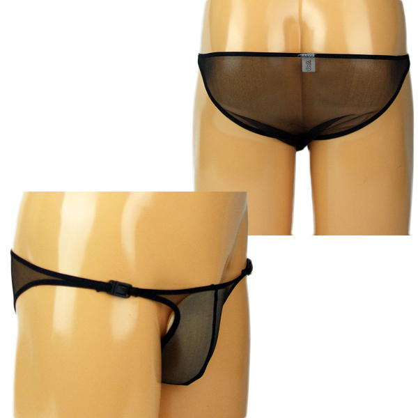TOP > メンズ ショーツ・ビキニ > メンズ キラキラシースルーワンタッチバックル付きハーフバック ブラック