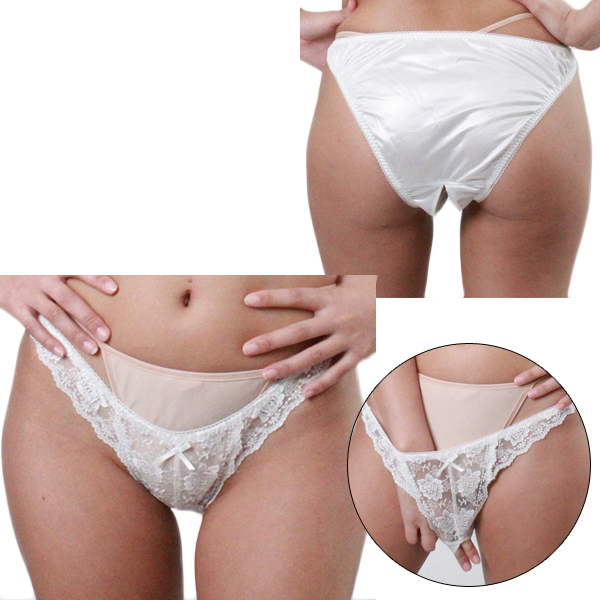 TOP > オープン ブラ・ショーツ(穴あき) > 柔らかな光沢生地にレース付きオープンフルバック 2Lサイズ ホワイト