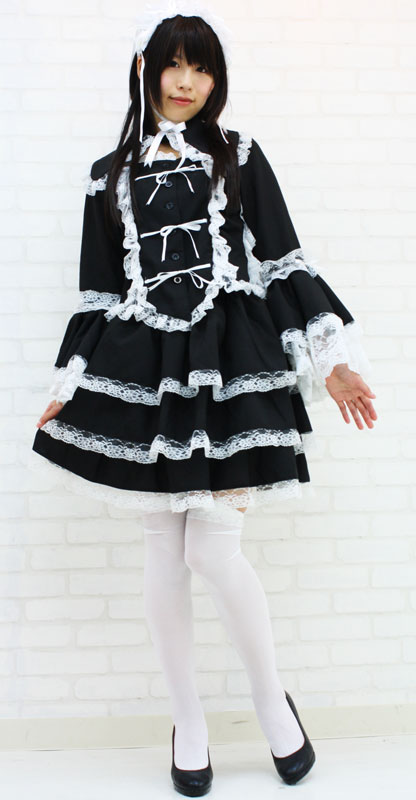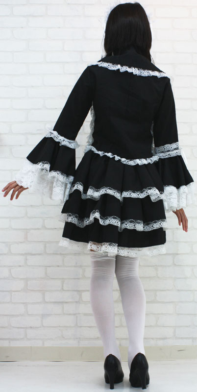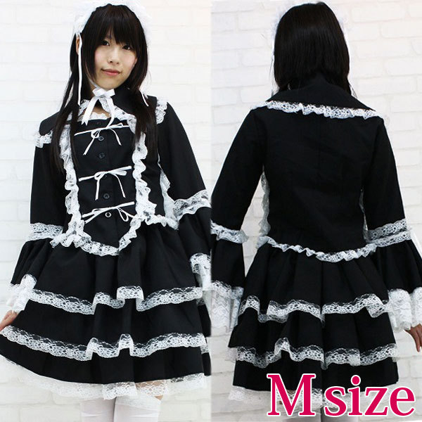 仕様Mサイズ:B76〜82cm・W64〜100ccm 丈:上着48cm(袖62cm・肩幅37cm)・スカート47cm セット内容:ジャケット(前ボタン留め、姫袖)・別衿・ヘッドドレス(総レース仕様、バラのコサージュ付き)・スカート(ウェストゴム入り)